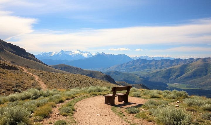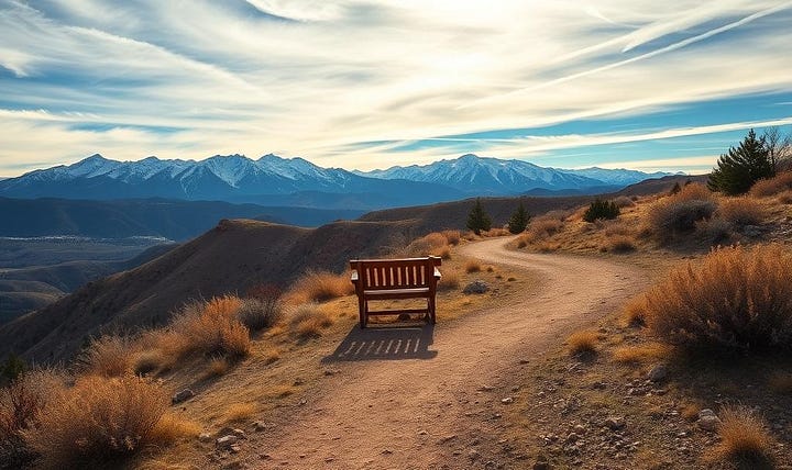 [ { "text": "Granite Witness", "token_ids": [7100, 7110], "explanation": "The **unwavering stability** of the distant Colorado mountains (Front Range Sentinel + Granite) guarantees the Covenant's **Calm** and continuity. The Divine presence is eternal and unchanging." }, { "text": "Winding Trail & Bench", "token_ids": [7140, 7141, 7143], "explanation": "A **walking trail** in the immediate foreground, featuring a **wooden bench** at a **gentle bend** disappearing into the mid-distance. This symbolizes the journey of human faith, offering a point of rest, contemplation, and the path to being **Remembered**." } ]
