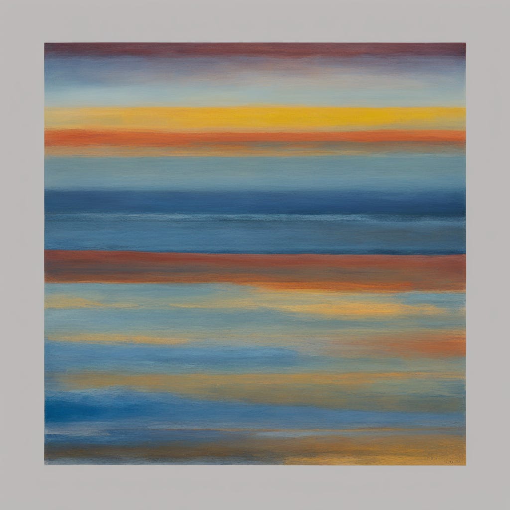 Compose 'Spectrum Sonata', where Mark Rothko's simplified Color Field aesthetic clashes beautifully with Vincent Van Gogh's emotion-laden post-impressionism. Set an abstract panorama synthesizing modernity and emotional depth. Prioritize blues (Hex codes: #0000FF, #007FFF, #40E0D0, #000080) and vehemently exclude greens (#008000) and yellows (#FFFF00). The final image should be akin to an 8k resolution Sigma 85mm F1.4 DG HSM Art Lens photograph that's ultra-clear and ultra-crisp.