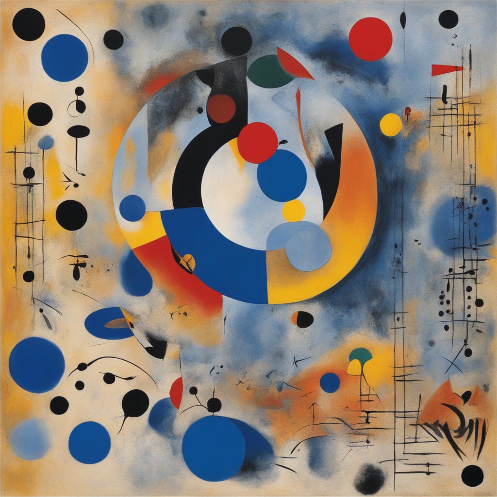 Develop 'The Mirage of Moments', combining Joan Miró's bright surrealism with Pierre-Auguste Renoir's intimate settings. Ground this abstract visual poetry in inspirational motives. Dive into a blues spectrum (Hex codes: #0000FF, #007FFF, #40E0D0, #000080), while radically rejecting harsh blacks (#000000) and stark grays (#808080). Reflect the clarity, crispness, and detail of an 8K-resolution photo shot with a Sigma 85mm F1.4 DG HSM Art Lens.