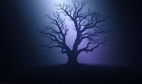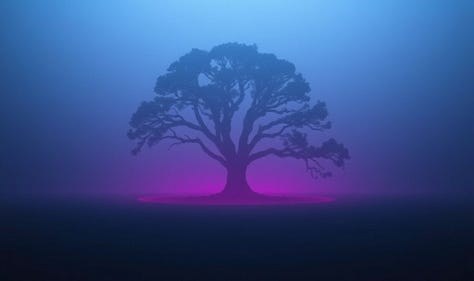 "element": "A central 'Pillar of Absence'—a void in the shape of a massive oak tree, visible only by the way the surrounding light bends around its non-existence.",