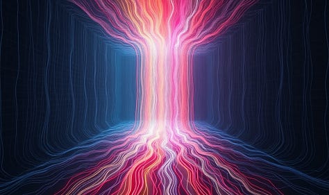 "element": "The spaces *between* the filaments are pressurized with 'Saturated Void'—colors that bleed into one another without mixing.",