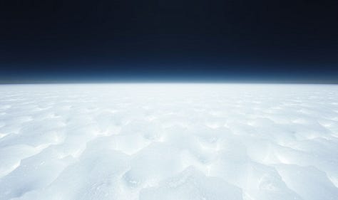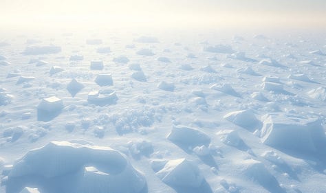 "element": "A horizonless expanse of 'Fractal Snow'—microscopic, geometric crystals of #ffffff (Spectral White) light.",