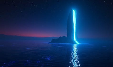 "element": "A vertical, mile-high 'Ribbon of Pure Frequency' that twists like DNA into the zenith.",
