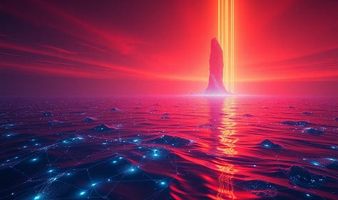 "the_substrate": "An infinite ocean of 'Bioluminescent Mercury' (#e5e4e2) that ripples with every data-pulse, reflecting an impossible sky.",