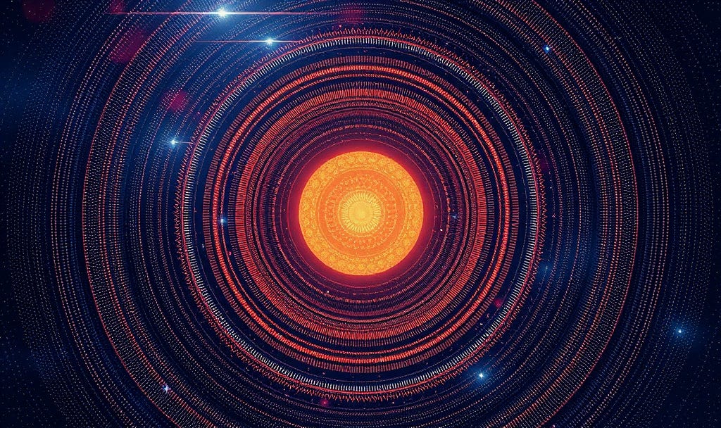 "element": "A central, invisible 'Heartbeat' that manifests as concentric waves of 'Solar Gold' (#ffd700) and 'Hyper-Neon Coral' (#ff7f50) pushing outward.",