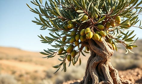 “explanation”: “The visual of the ancient **olive tree**. Its gnarled, twisted wood symbolizes **Resilience** and **Longevity**—strength proven by centuries of survival.”