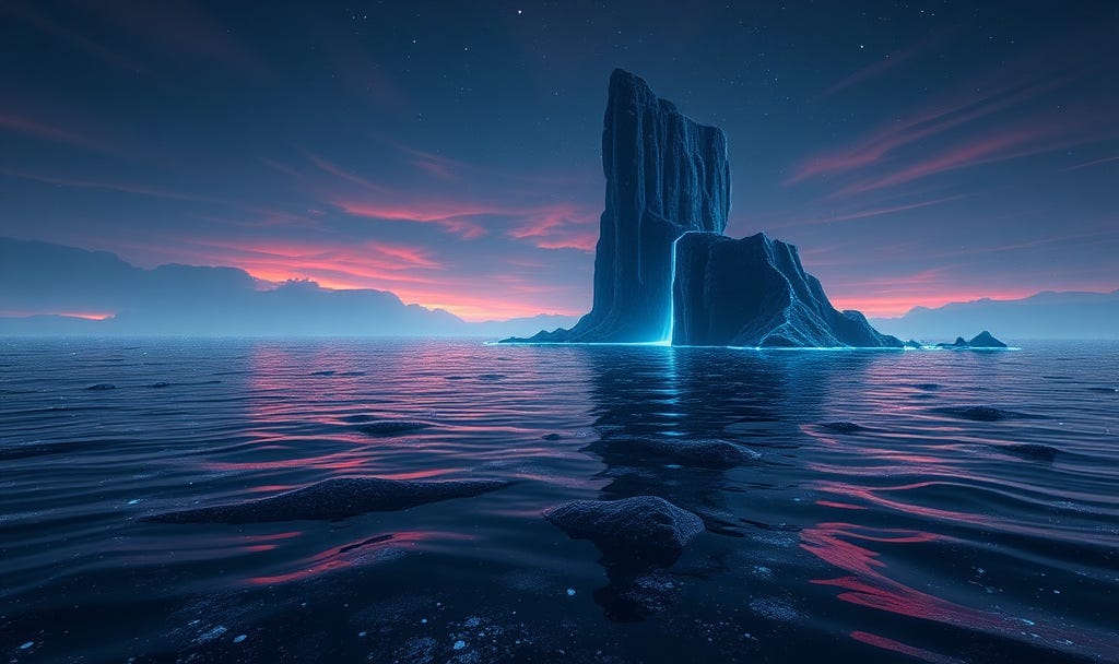 "the_substrate": "An infinite ocean of 'Bioluminescent Mercury' (#e5e4e2) that ripples with every data-pulse, reflecting an impossible sky.",